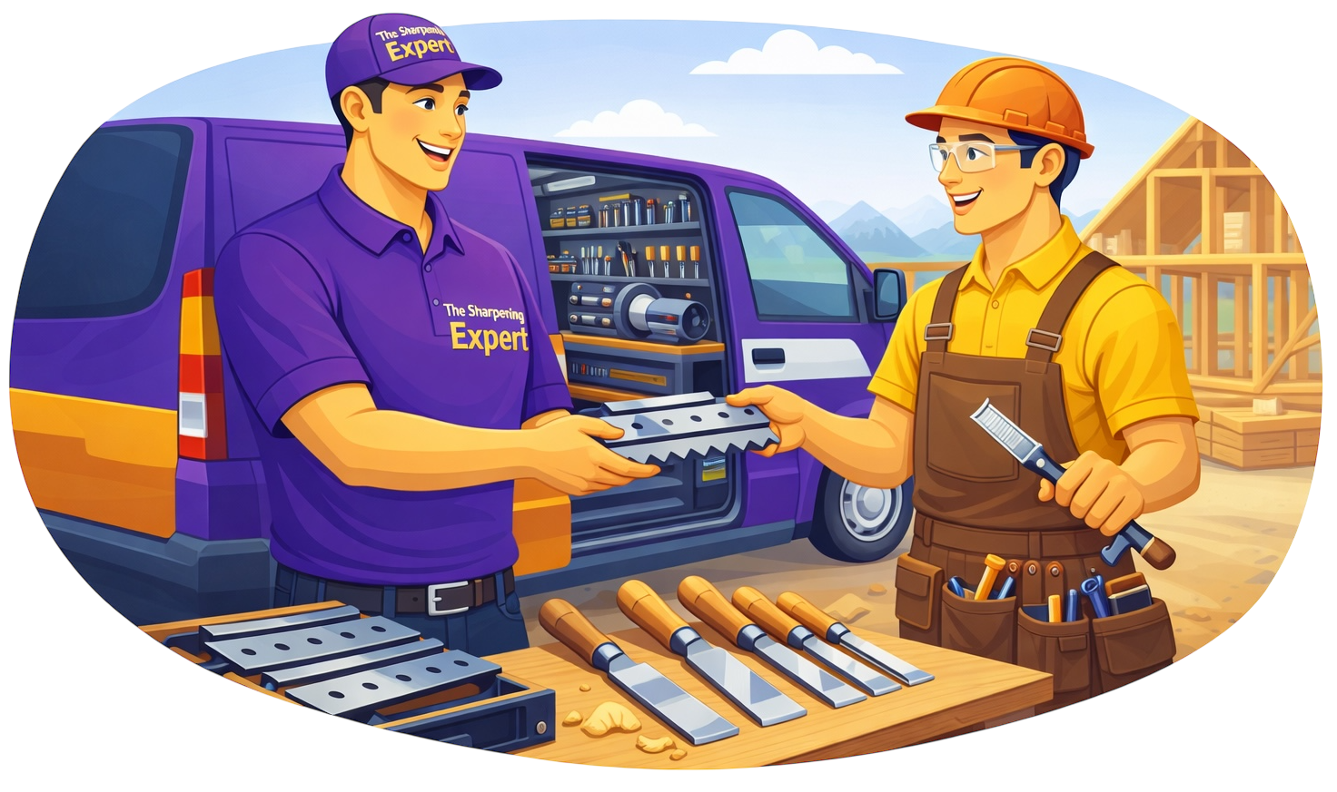 Time off site usually means lost income. Driving across town to drop off blades and waiting days for collection isn’t practical for most trades. That’s why our mobile tool sharpening service comes directly to you.