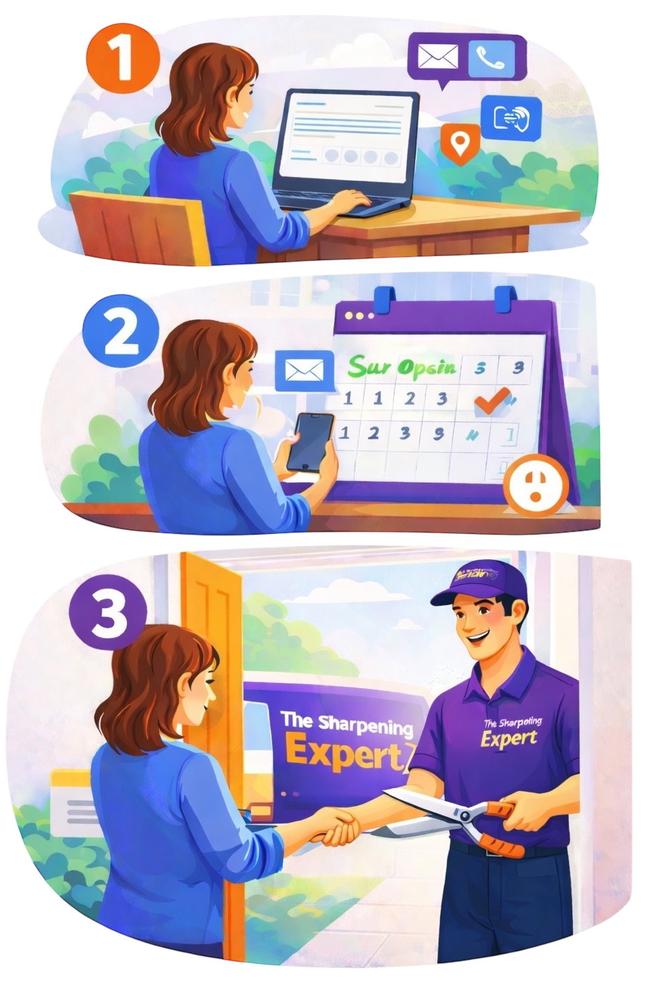 We offer flexible appointment times and a 24-hour call-back service, making booking straightforward. This service works well for homeowners, gardeners, landscapers, and commercial clients who rely on sharp tools to get the job done.